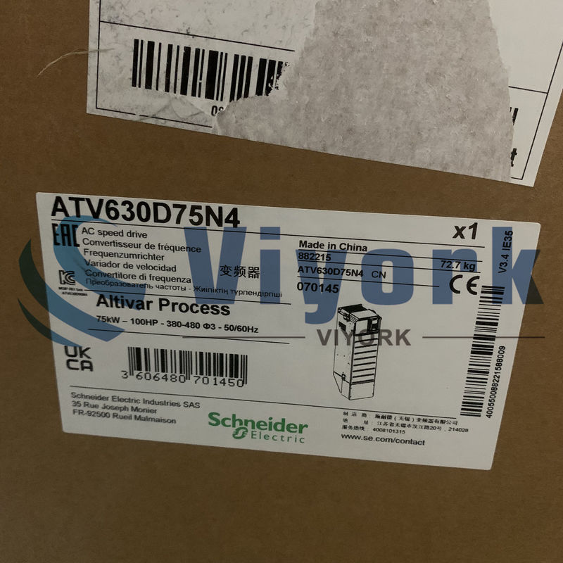 Schneider ATV630D75N4 DRIVE ALTIVAR PROCESS ATV600 VARIABLE SPEED 75KW 100HP NEW